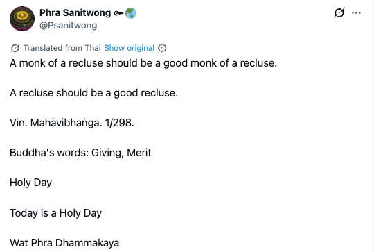 สมโณ อสฺส สุสฺสมโณ. สมณะ พึงเป็นสมณะที่ดี.