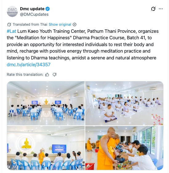 ศูนย์อบรมเยาวชนลาดหลุมแก้ว จังหวัดปทุมธานี จัดโครงการปฏิบัติธรรมคอร์ส “สมาธิเติมสุข” รุ่นที่ 41