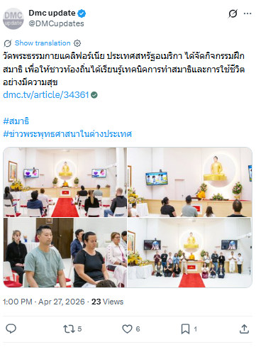 วัดพระธรรมกายแคลิฟอร์เนียได้จัดกิจกรรมฝึกสมาธิให้ชาวท้องถิ่น...