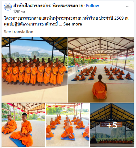 โครงการบรรพชาสามเณรฟื้นฟูพระพุทธศาสนาทั่วไทยประจำปี 2569 ณ ศูนย์ปฏิบัติธรรมนานาชาติกระบี่