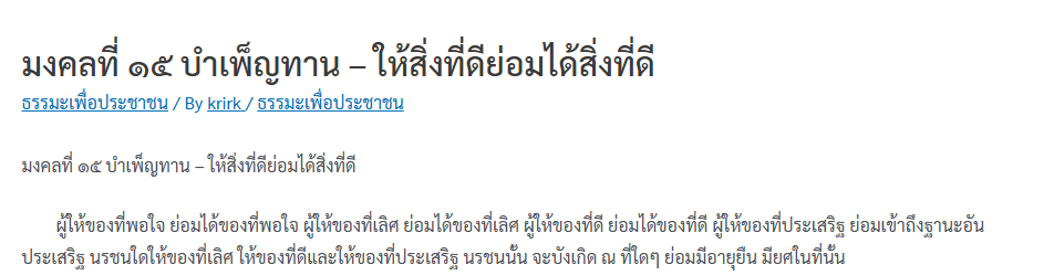 ข้อที่ 7 . มงคลที่ ๑๕ บำเพ็ญทาน – ให้สิ่งที่ดีย่อมได้สิ่งที่ดี