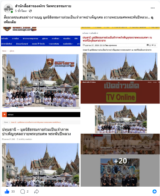 ข้อที่ 2 . สื่อมวลชนเสนอข่าวงานบุญ มูลนิธิธรรมกายร่วมเป็นเจ้าภาพบำเพ็ญกุศล ถวายพระบรมศพพระพันปีหลวง
