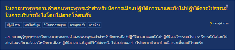 ข้อที่ 8 . ในศาสนาพุทธตามคำสอนพระพุทธเจ้าสำหรับนักการเมืองปฏิบัติภาวนาและยังไม่ปฏิบัติควรใช้ธรรมะในการบริหารยังไงโดยไม่สาดโคลนกัน